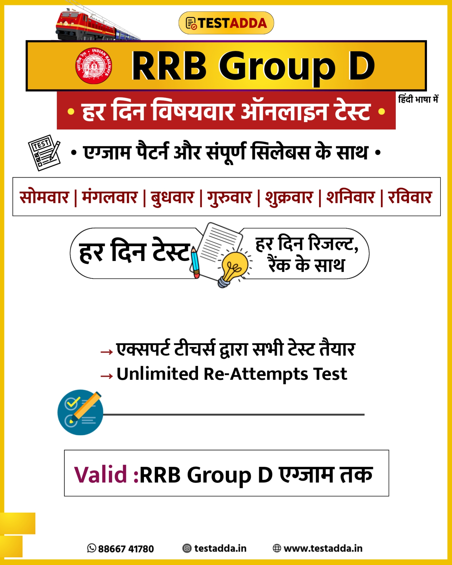 🚆 TEST ADDA – India का नंबर 1 ऑनलाइन डेली टेस्ट प्रोवाइडर✍